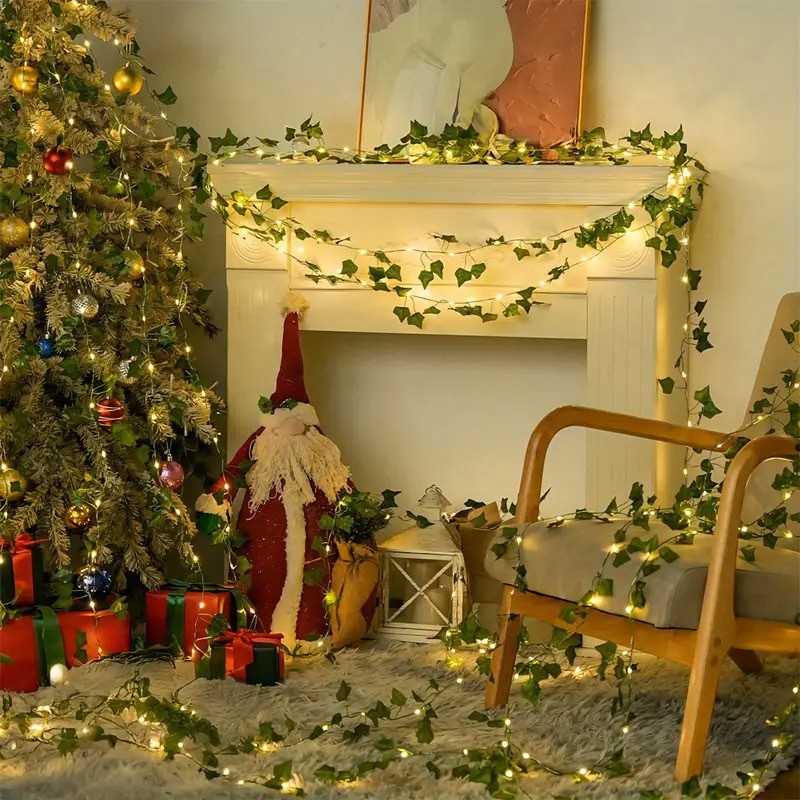 15 Feet Magical Ambiance Artificial Vine Fairy Lights: Flower Green Leaf Design