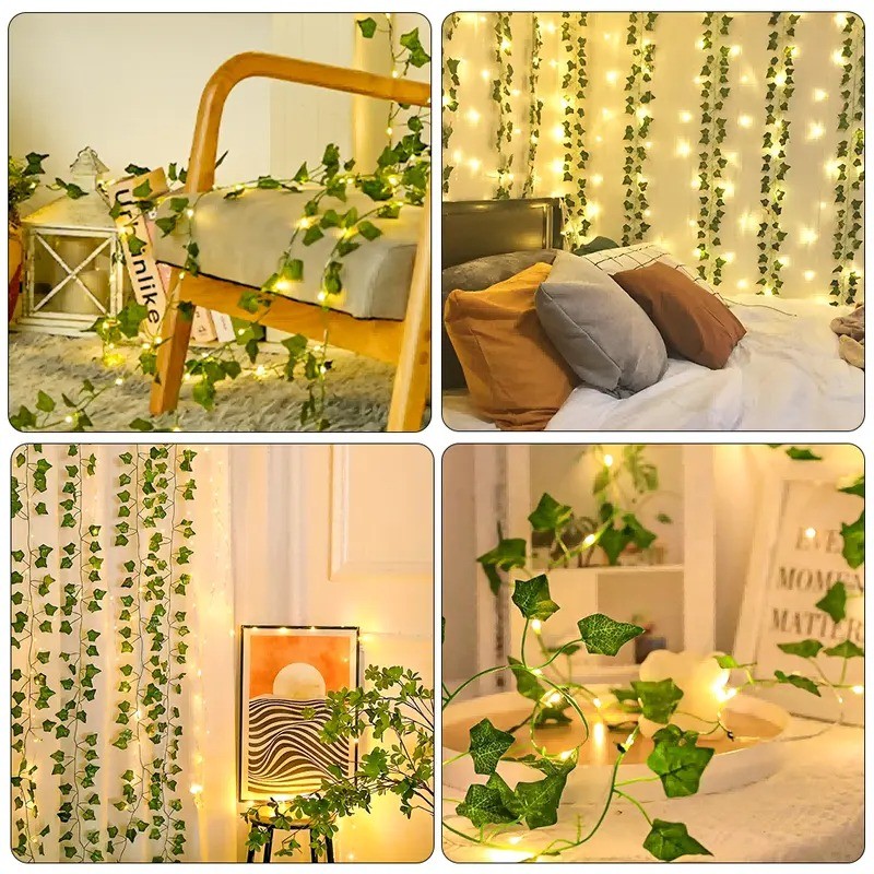 1pc 20 LED Ivy Leaf Fairy Light String - Battery Operated for Bedroom & 7 feet