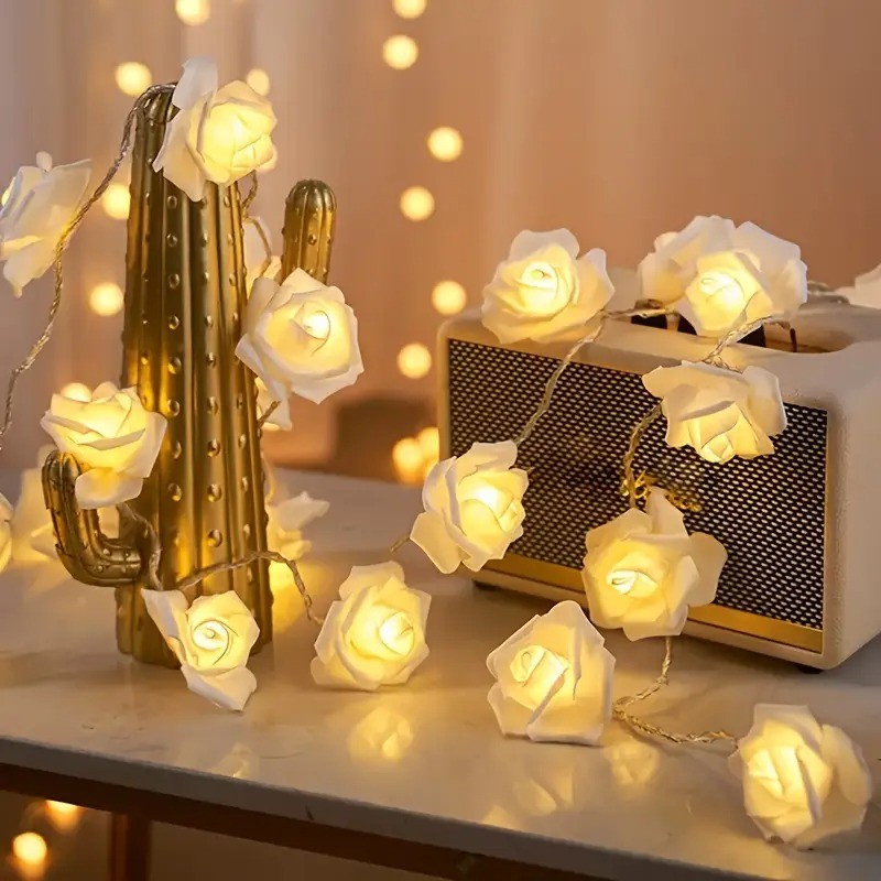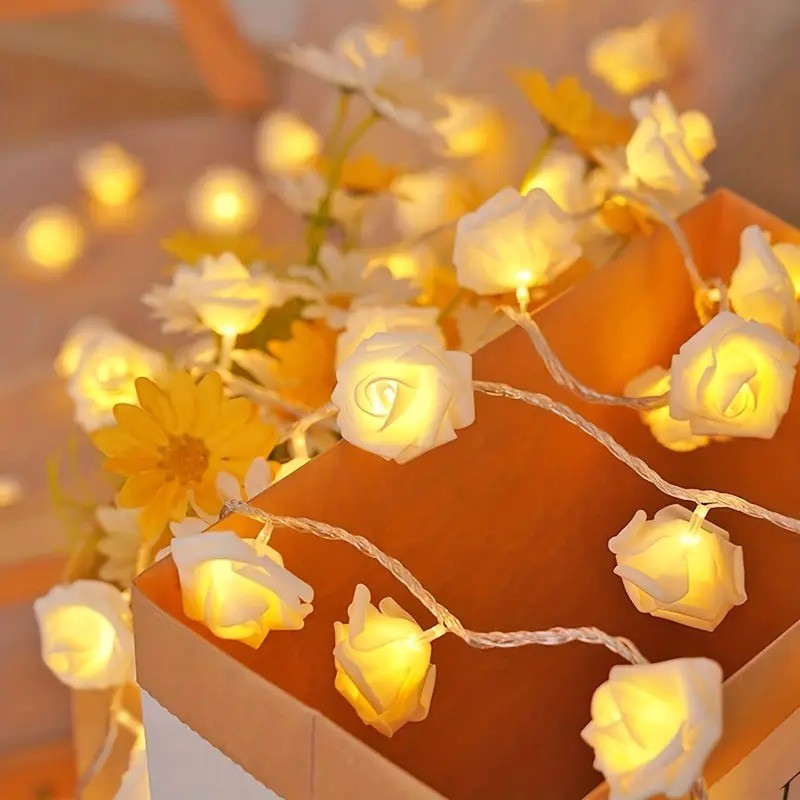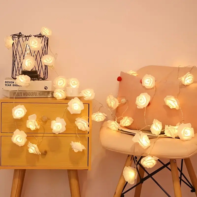 20 LED Foam Rose Flower Decorative Light String 15 feet