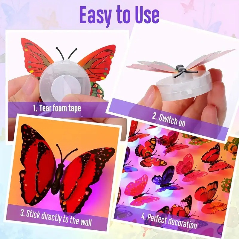 6pcs Multicolor LED 3D Butterfly Wall Light
