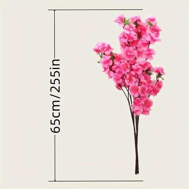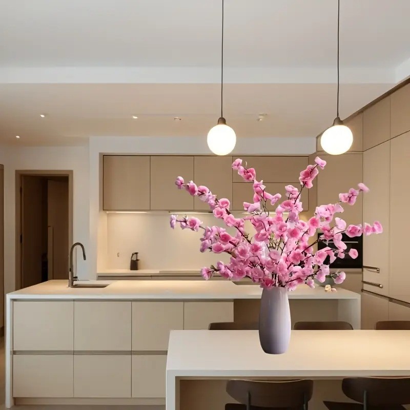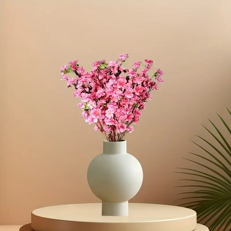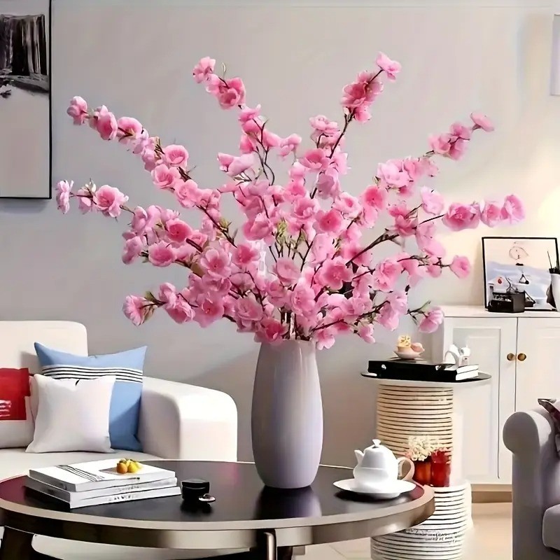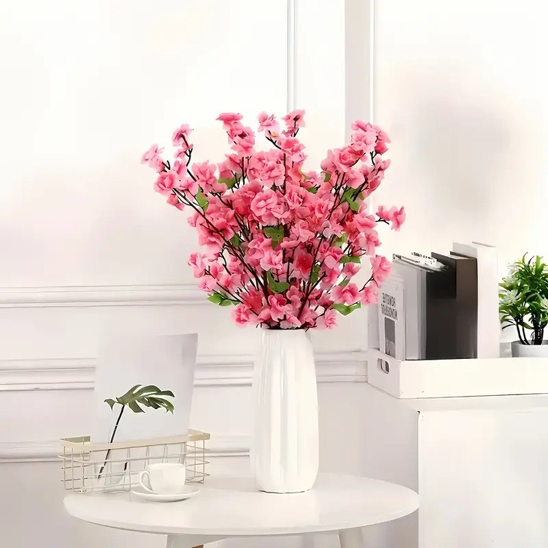 Artificial Cherry Blossom Stems - Realistic Pink Peach Blossoms with Green Leaves,
